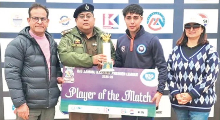 Achintya Khajuria was named the Man of the Match for his stellar all-round performance, contributing 45 runs with the bat and claiming two wickets with the ball.